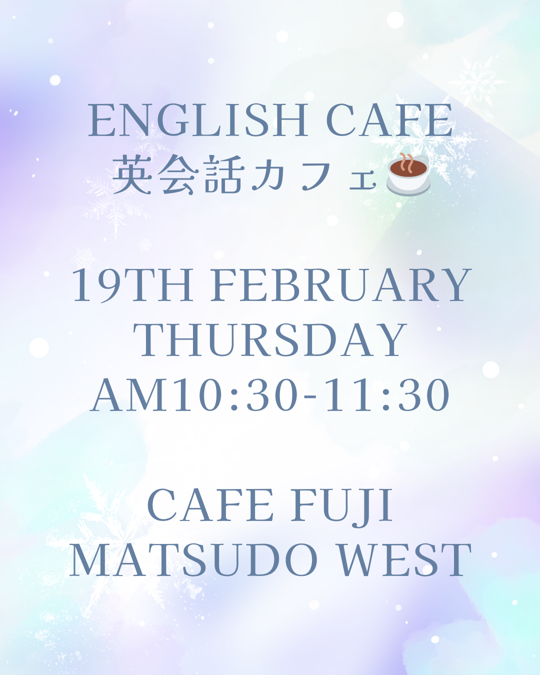 English cafe 英会話カフェ☕️ 19th february thursday am1030-1130 cafe fuji matsudo west